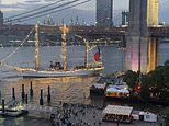 In an X statement, the Mexican Navy explained in Spanish: ‘During the sailing maneuver of the CuauhtĂ©moc sailboat in New York, a mishap occurred with the Brooklyn Bridge, causing damage to the training ship, preventing the continuation of the training cruise for the time being.